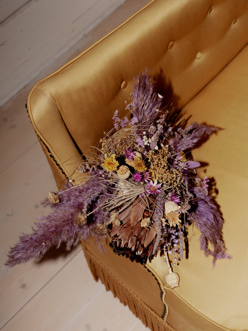 Munka közben folyamatos volt a konzultáció, de épp csak annyi, hogy lássam, jó kezekben vagyok, a többit rutinból intézte Adri. Minden alkalommal, amikor elkészült valami és kaptam róla fotót. Utólag még a gondolat is furcsa, hogy esetleg szárazvirág helyett vágott virág díszítette volna az esküvőnket. Számomra az örökkévalóságot jelképezi, az aznapi hangulat és érzelmek konzerválását, arról nem is beszélve, hogy nem kellett azon aggódni, mikor melyik virág fogja megadni magát.